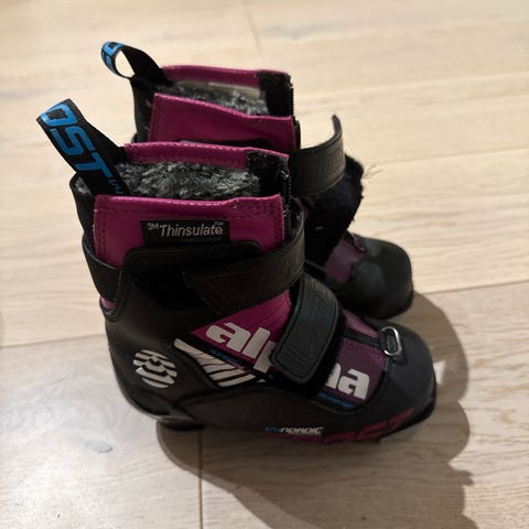 Pent brukte Alpina skisko for barn i størrelse 25. varmt ullfôr inni.