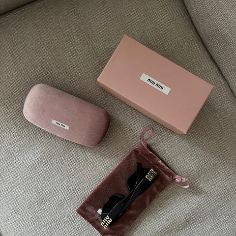 Vurderer å selge mine nydelige Miu Miu "Regard" solbriller. Dette er en av de mest ettertraktede modellene fra Miu Miu de siste sesongene, kjent for sin smale, sofistikerte profil og vintage-inspirerte look.