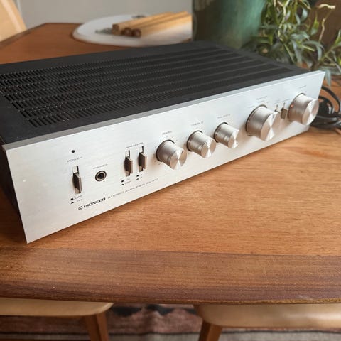 Meget pen og velfungerende NIKKO NR-819 selges. Høykvalitets receiver kjøpt av meg i desember 1981, sjekk kvittering! Snappy forsterker på 2 X 45 Watt i 8 Ohm og glimrende RIAA preamp innebygd. Følsom og skarp FM radio. Eneste mangel er at viserinstrumentene ikke beveger seg. Send gjerne melding ved interesse. Funfact: 1685 kroner i 1981 tilsvarer 7200 kroner i dag. Pickup only!