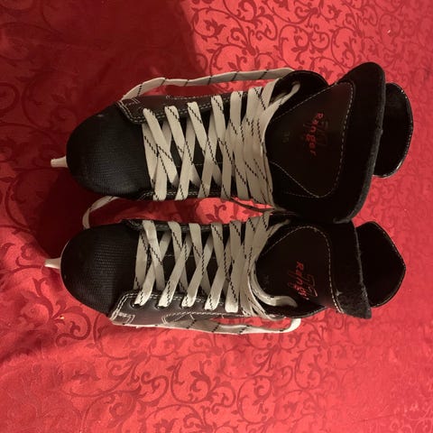Ranger 77 ishockeyskøyter for barn i størrelse 37. Skøytene har svart og grå fargekombinasjon og er laget for ishockeysport.