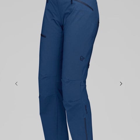 Norrøna Falketind turbukse i størrelse M for dame. Buksa er svart og laget med Gore-Tex materiale, som gir vanntett og pustende egenskaper. Designet for utendørsaktiviteter med flere lommer og justerbare detaljer.