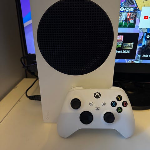 Xbox Series Xbox Series S konsoll i hvit farge. Inkluderer trådløs kontroller, HDMI-kabel og strømledning. Konsollen har kompakt design og er egnet for spill på Xbox Series-plattformen.😁
