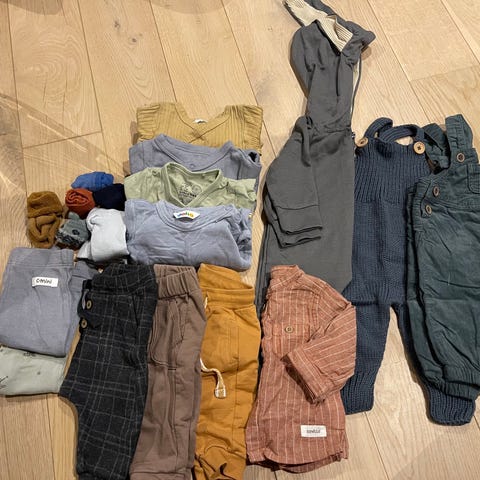 Mesteparten er i næytrale farger, men noe blått.