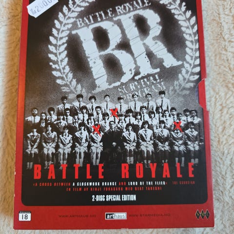 Battle Royale 2 disc DVD med japansk film fra Takeshi Kitano. Inkluderer flere scener og ekstramateriale. Produktet er i standard DVD-format.