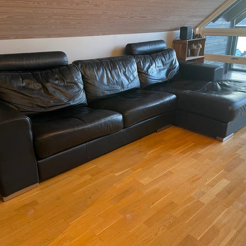 Sofa er hel og pen, men den ene delen er ødelagt. Se bildet.
