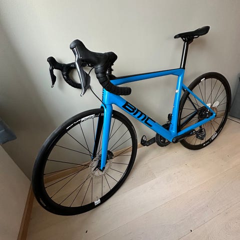 Alt er stock bortsett fra hjulene, jeg har tatt av det litt tunge aluminium hjulsettet og erstattet med karbon. Kan selges uten hjulsett, ta kontakt for pris.