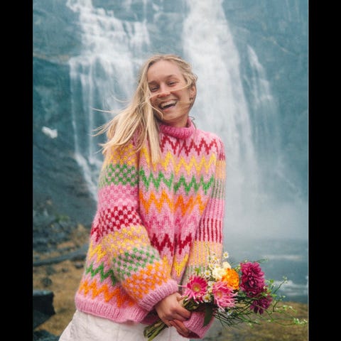 Kun brukt en gang, som ny. Selges da den er litt liten til meg. Strikket med vridd rett vrangbord.