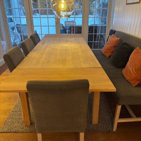 Etter å ha reklamert til Bohus, fikk vi nye bordplater og nye ileggsplater, derfor selges disse.