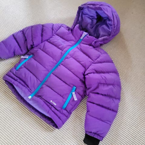 Dunjakke fra Bergans i str.98. God i str. Fargen kommer ikke helt frem på bildene.