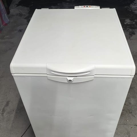 Liten fryseboks, effektiv drift, ukjent alder, mål 60 cm x 58 cm