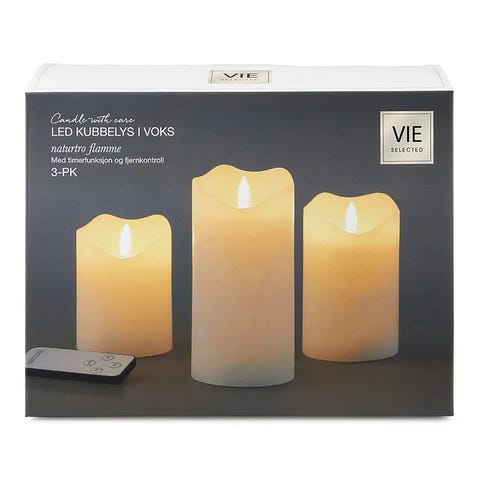 3 stk LED-Kubbelys i Voks. - Ny i Uåpnet Eske!
