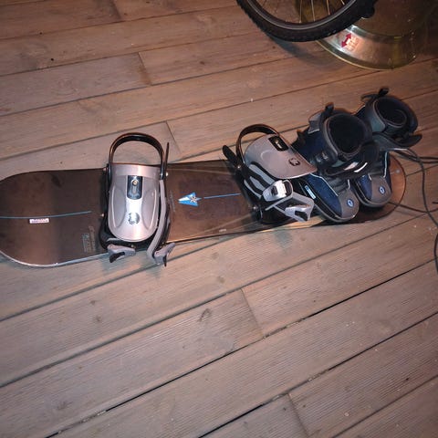 K2 snowboard 120 cm med fargerikt design, inkludert bindinger og boots str 38. Bootsene har borrelås og stroppesystem for god passform.