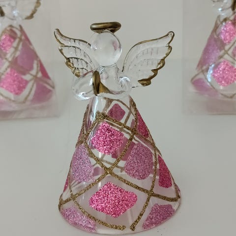 Små vakre engler i glass.Fremstår i god stand. 1.H:7cm. 2.H:6cm. 3.H:6cm. 4.Til å henge på juletreet.H:7cm.