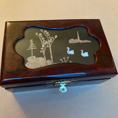 Søkeord: smykkeskrin, smykkeboks, skrin, treboks, oppbevaring, smykkeoppbevaring, rominndeling, interiør, gave, klassisk, vintage. Gammel treverk tre smykkeboks smykker smykke klokke klokkeboks oppbevaring boks