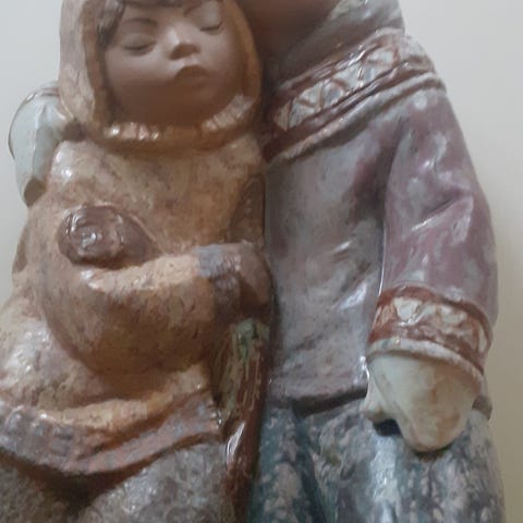 Inutittisk produsert kajakk m/fangstmann, håndverk fra anslått 40-50 årene. Sjelden, autentisk, og et fint eksemplar. Mangler som alltid på disse eksemplarene, en liten fangstbøye i kurven ved fangstmannen. Harpunen er derimot på plass på kajakkens akterdekk. Laget av skinn, bein, sener, sikkert drivved. Lengde: 50 cm. Be gjerne om ytterligere bilder hvis ønskelig.