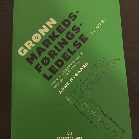 Arne Nygaards «Grønn markedsføringsledelse». Boken er utgitt av Fagbokforlaget og omhandler temaer relatert til markedsføringsledelse med fokus på bærekraft og grønn markedsføring. Første utgave 2019, tredje opplag 2022. Ny pris: 499