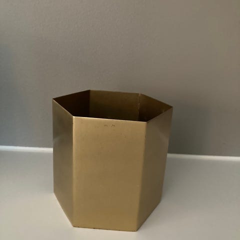 Tom Dixon Eclectic dekorasjonsurne laget av metall. Urnen har en polygonal form og en gullfarget overflate. Egnet for bruk som dekorasjon i hjem eller kontor.