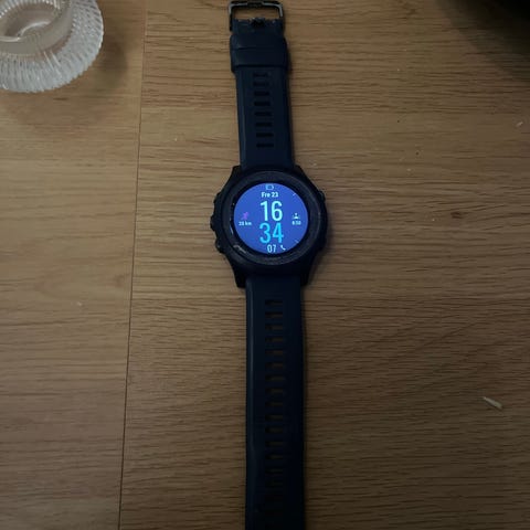 Nypris på modellen var tidligere: 12 200kr. Boksen er åpnet, men klokken er ny da jeg mottok en helt ny erstatning fra Garmin etter å ha sendt den forrige på reparasjon.