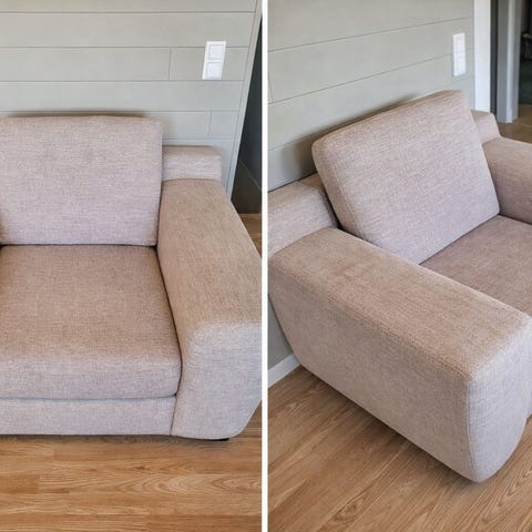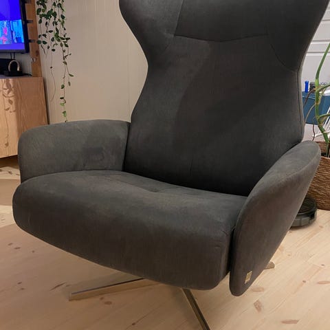 Pen og komfortabel lenestol. Grå/beige farge. Trekk er nyvasket.