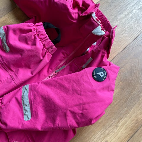 Selges rimelig da den er godt brukt, men ingen hull eller stor slitasje på selve dressen, så mye bruk igjen. Hette mangler og en av stroppene under foten er ganske slitt og bør byttes.