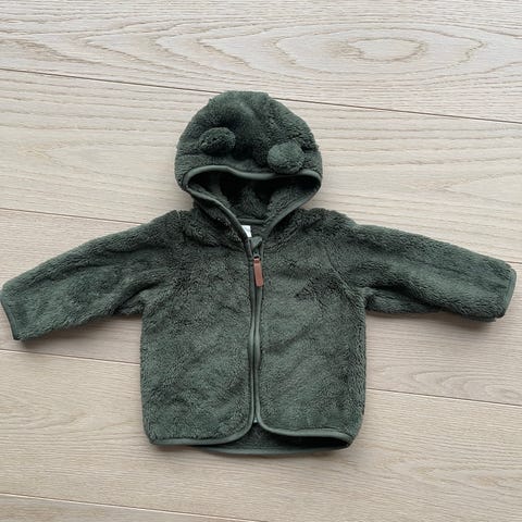 Søt fleeceforet myk mellomværs jakke i str 68, brukt inn og ut av bil og på bytur.