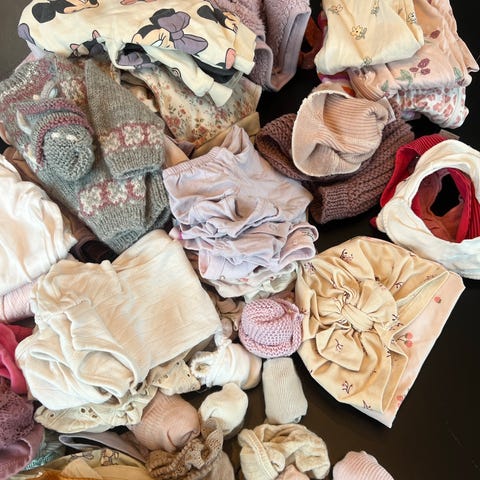 Selger klespakke fra Newbie etter tvillingjentene mine str. 68. Bodyer i nydelig, pastell blomsterprint🌼 Med «puff-ermer» med strikk, blondekrage og knepping i nakken. Matchende siklesmekker. Hvite bukser fra Newbie. Den ene har en ubetydelig flekk som kun synes i visse lys om du ser godt etter.