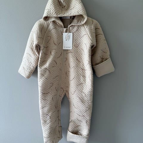 Størrelse 80-86, litt stor i størrelsen og barnet kan vokse litt i den.