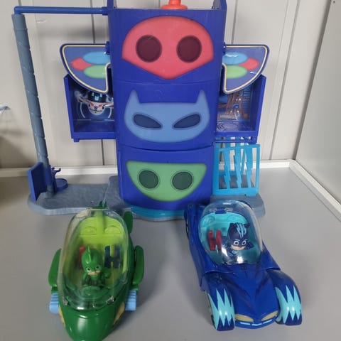 Paw Patrol lekebil med tilhenger og medfølgende figur. Leken er laget for barn og kan brukes til rollelek og fantasifull lek. Bilen har farger i blått, hvitt og rødt.