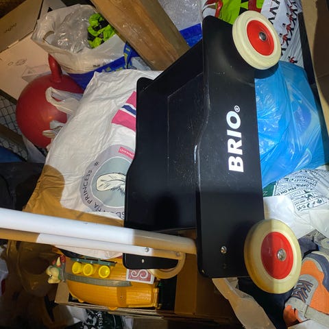 Klassisk BRIO gåvogn i tre selges billig pga flytting. Den har noen bruksmerker men ingenting som påvirker funksjonen. Håndtaket kan stilles i to vinkler, og hjulene strammes for å justere motstanden i vognen. Må hentes.