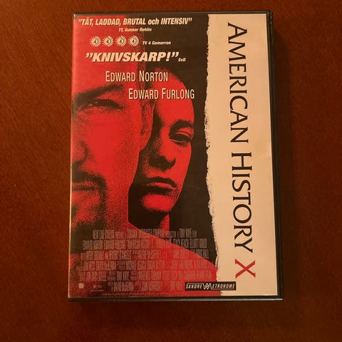 American History X DVD film med Edward Norton og Edward Furlong. Inneholder filmen American History X, tilgjengelig i DVD-format.