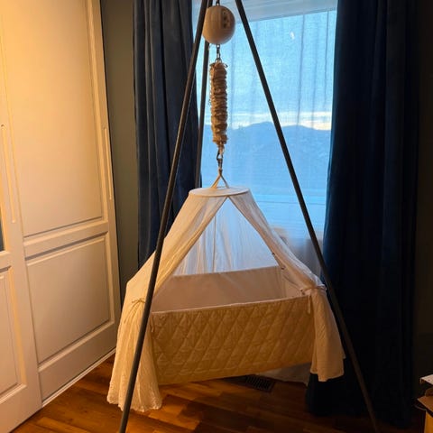 En klassisk bestselger - hengevuggen er en hjelpende hånd som gir et hyggelig sovemiljø for den lille, mens den stillegående motoren vugger babyen forsiktig for å sove. Det flotte stativet gjør det mulig med mer og bedre søvn - hvor som helst i hjemmet ditt.