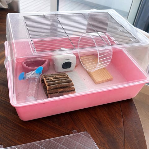 Hjemmesnekra hamsterbur, som gir god plass og rom for aktivitet.