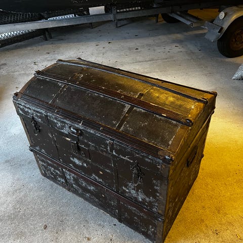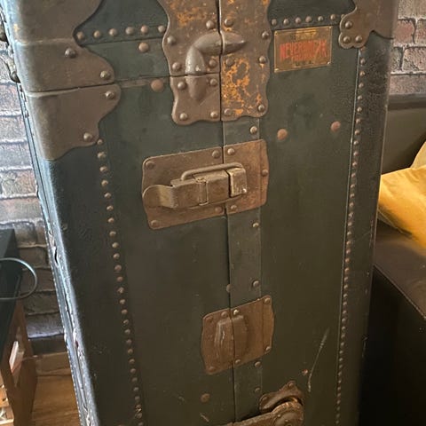 Men her kommer poenget: Dette er ikke bare en Oshkosh Trunk i varianten Hudson, det er i tillegg et ekte historie dokument fra 1940 og fremover, med opprinnelig eiers sjekkhefte fra The American National Bank, bankinnskudds bok fra Merchant & Mechanics Federal Savings & Loan Association of Springfield, bilde av det som tilsynelatende er Lloyd L Bobbitt. Inne i kofferten ligger en masse gamle dokumenter, det være seg ovennevnt, samt diverse kvitteringer, billetter og avisutklipp (kuponger) og det meste har Ellen E Bobbitt sitt navn på seg. Jeg hadde tenkt til å ta tak i denne historien og kontakte diverse Bobitt’er over sosiale medier, men har ikke kommet så langt. Jeg driver å ommøblere hjemme og har dessverre ikke plass til den lengre i stuen hvor den har stått som en historisk interiørgjenstand.
