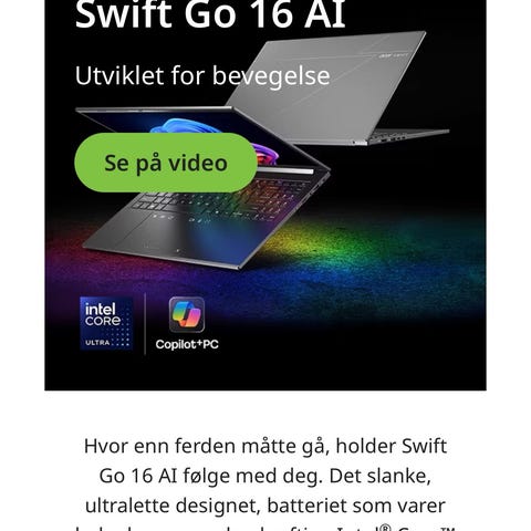 Kraftige komponenter, kompakt design, levende 2.5K-berøringsskjerm, rask Wi-Fi 6E-tilkobling og allsidige tilkoblinger gjør Swift 14 til den perfekte løsningen for både moderne fjernkontroll og hybrid arbeid og underholdning. Datamaskinen har en kraftig 13 gen Intel® Core™ i7-13700H-prosessor, 16 GB DDR5-minne og en rask 1 TB SSD-disk (PCIe Gen 4). Opptil 16 timers batterilevetid og 100 W lading med Thunderbolt 4 gjør hverdagsbruken jevn og fleksibel.