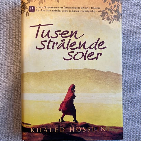 Khaled Hosseini Tusen strålende soler bok. Roman som skildrer livene til to kvinner i Afghanistan, med fokus på temaer som vennskap, undertrykkelse og håp.