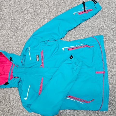 Nikita skijakke (explosive jacket) for dame / ungdom i størrelse M. Jakken har en flerfarget design med hovedfarger i rosa og turkis. Den er utstyrt med hette, flere lommer inkludert en lomme for telefon etc. Egnet for bruk under vintersport og utendørsaktiviteter.