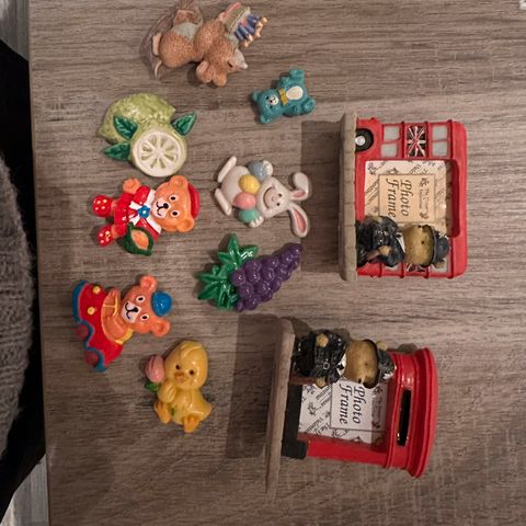 Magneter/kjøleskapsmagneter med bokstaver og forskjellige former i plast i ulike farger. Passer til bruk på magnetiske flater for læring og lek.