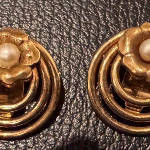 Spennende Brosje i gult gull med perle til salgs!