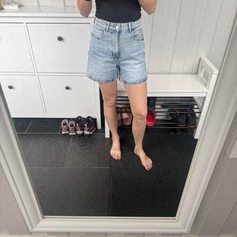 Zara Denim shorts i blå farge, størrelse XS for dame. Laget av denim materiale. Shortsene har lommer foran og bak, og en knapp- og glidelåslukking.