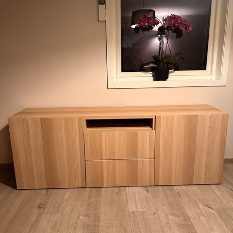 Svært lite brukt TV-benk av merke Piaski, kjøpt frå mobelbox.no for eit par år sidan. Eik-finish og svart understell. Nypris 2300.