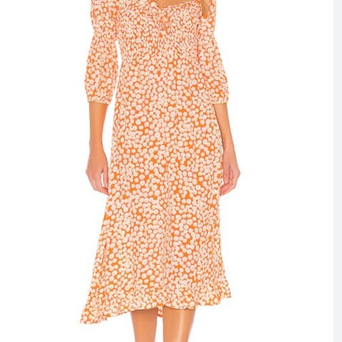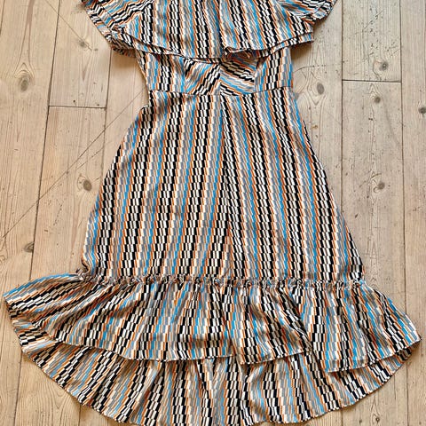 Nydelig kjole fra Seven Wonders i xs. Rekker meg til over ankelen, jeg er 164 høy. Brukt et par ganger. Flott som sommerkjole, til bryllup eller 17. mai. Fargen er mest riktig på bildene hvor jeg har den på. Kjøpt på Kouture i Oslo.