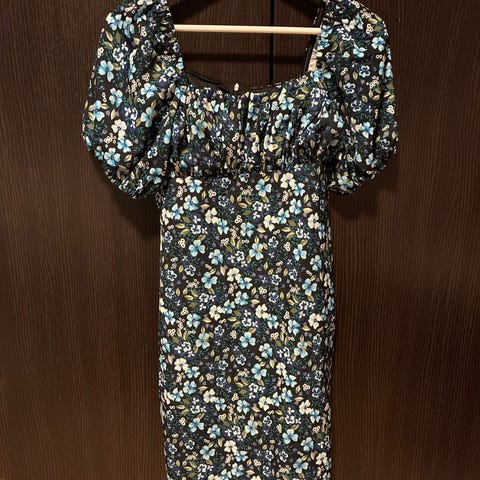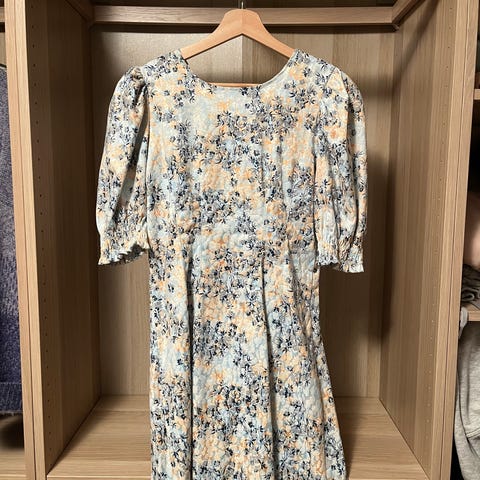 Lilla blomstrete kjole med puffermmer – Str. XL