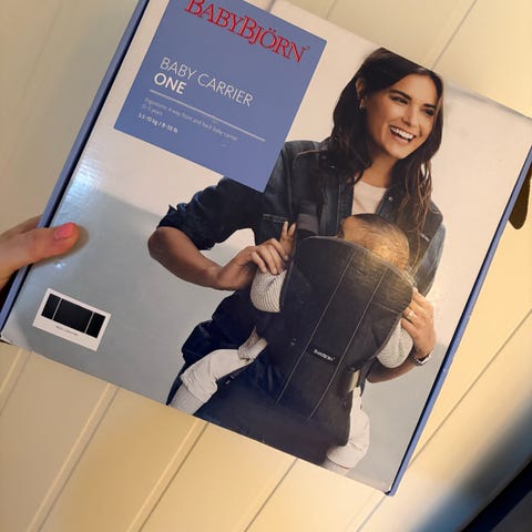 BabyBjörn One bæresele i grå farge. Bæreselen er designet for å gi støtte og komfort ved bæring av barn. Passer for både forside- og ryggbæring, med justerbare stropper for tilpasning.