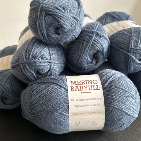 1 nøste blå merino babyull fra Gjesdal