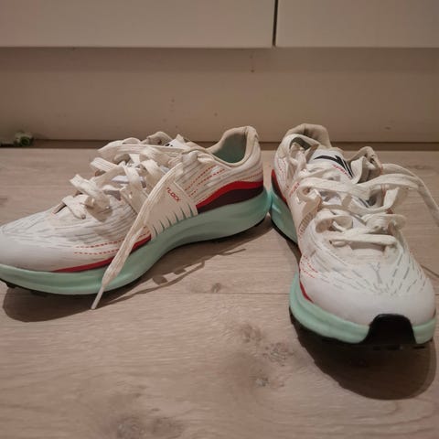 Nike løpesko i størrelse 40. Skoene har en grå og svart fargekombinasjon med oransje detaljer. Designet for løping med pustende materiale og demping egnet for sportsaktivitet.
