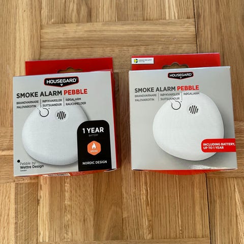 Housegard Smoke Alarm Pebble røykvarsler med nordisk design. Utstyrt med 1 års batterilevetid. Rundt, hvitt design. Egnet for boliger for tidlig varsling ved røykutvikling.