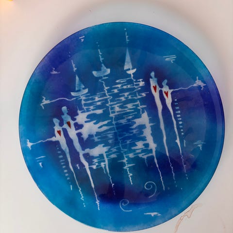 Dette kunstverket er et håndmalt glassfat,