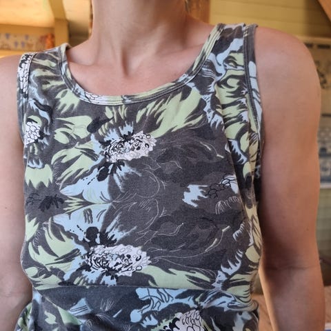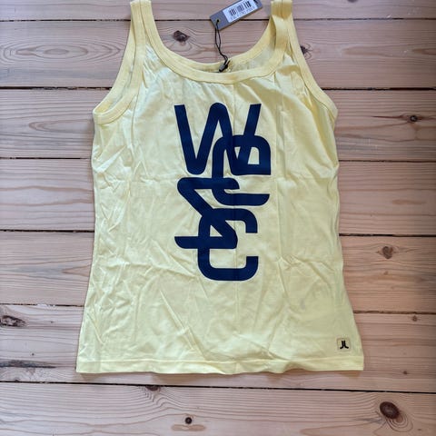 Gul vaffelsydd y2k topp kjøpt brukt i Leeds. UK str 16 (L?), men passer flere størrelser (tøyelig).
