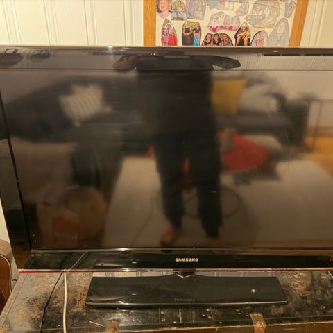 Full HD (1920×1080). Fungerer fint som TV eller PC-skjerm.