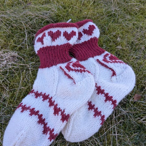 Helt nye hjemmestrikka sokker som varmer. Fotstørrelse på 25 cm. Kan sende flere bilder om ønskelig. Porto kommer utenom